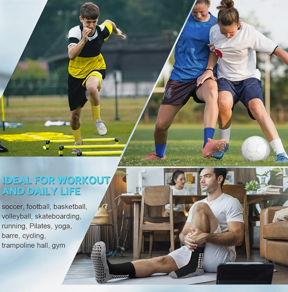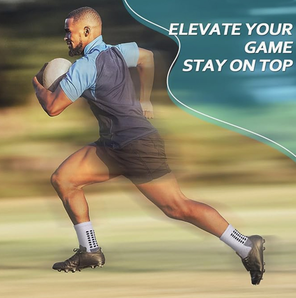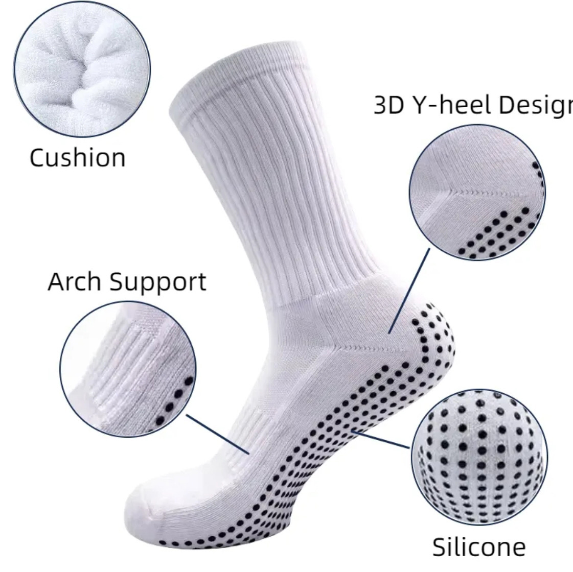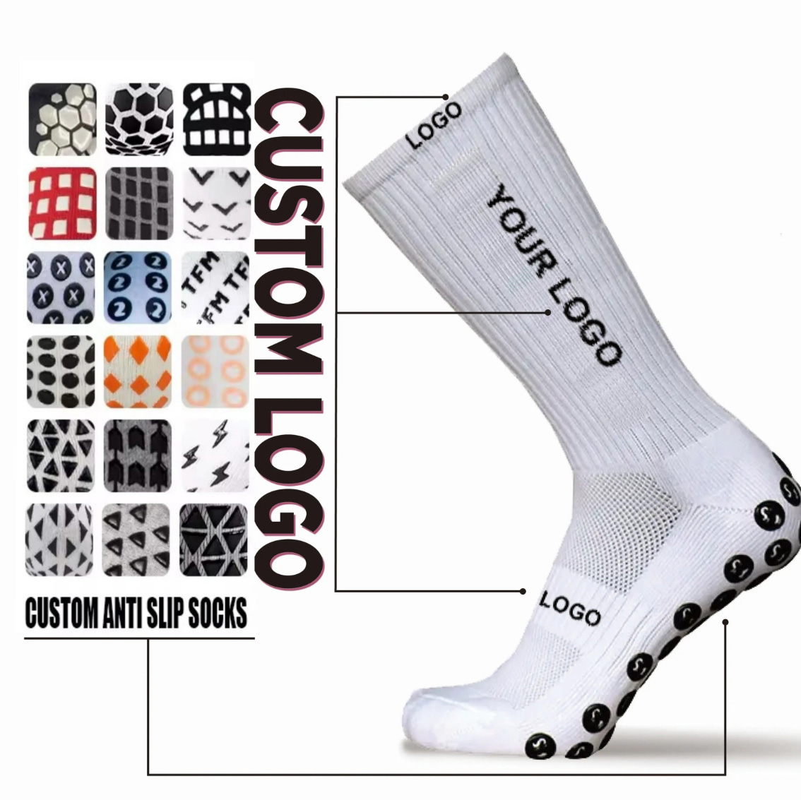 Supplier of performance football socks with customizable silicone grip (print your logo). Ideal for teams & brands. Low MOQ, reliable bulk supply. Request samples.